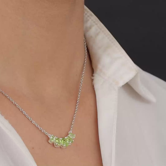 Embrace effortless grace and sophistication with this peridot 5-stone necklace, a perfect blend of style and substance. Crafted in high-quality sterling silver, it showcases five vibrant green peridots, each hand-selected for its radiance and natural beauty.