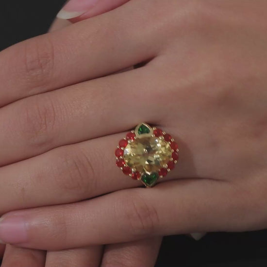 Yellow Labradorite, Chrome Diopside & Fire Opal Statement Ring – Bold & Brilliant